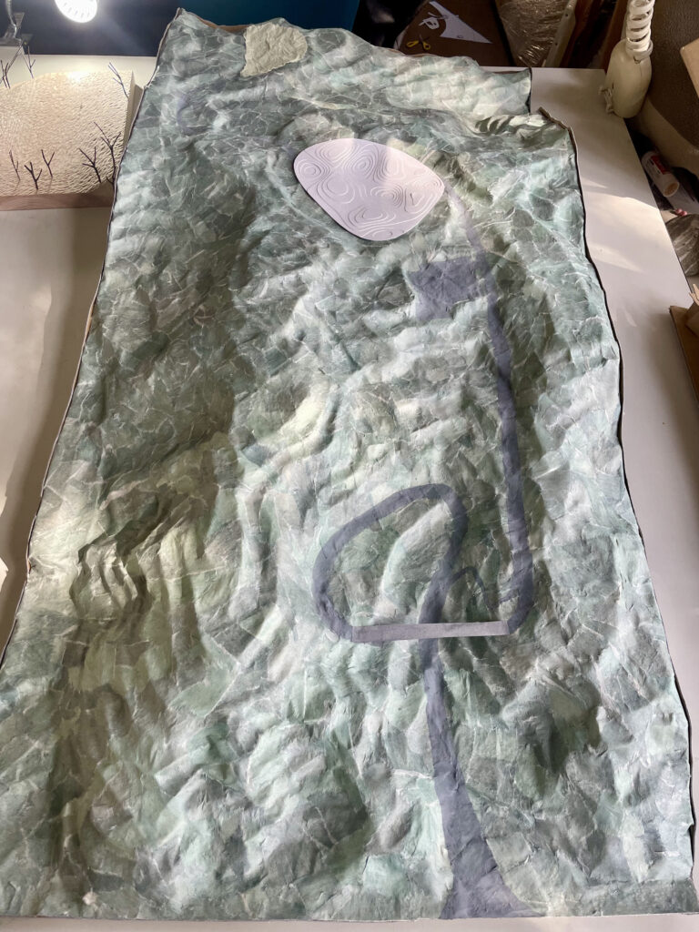 Stones are dispersed across the surface without fixed positions. Encountered through touch—the firmness underfoot, their palpable weight—they draw awareness back to the body and to immediate sensation. Attention settles into a more grounded presence.