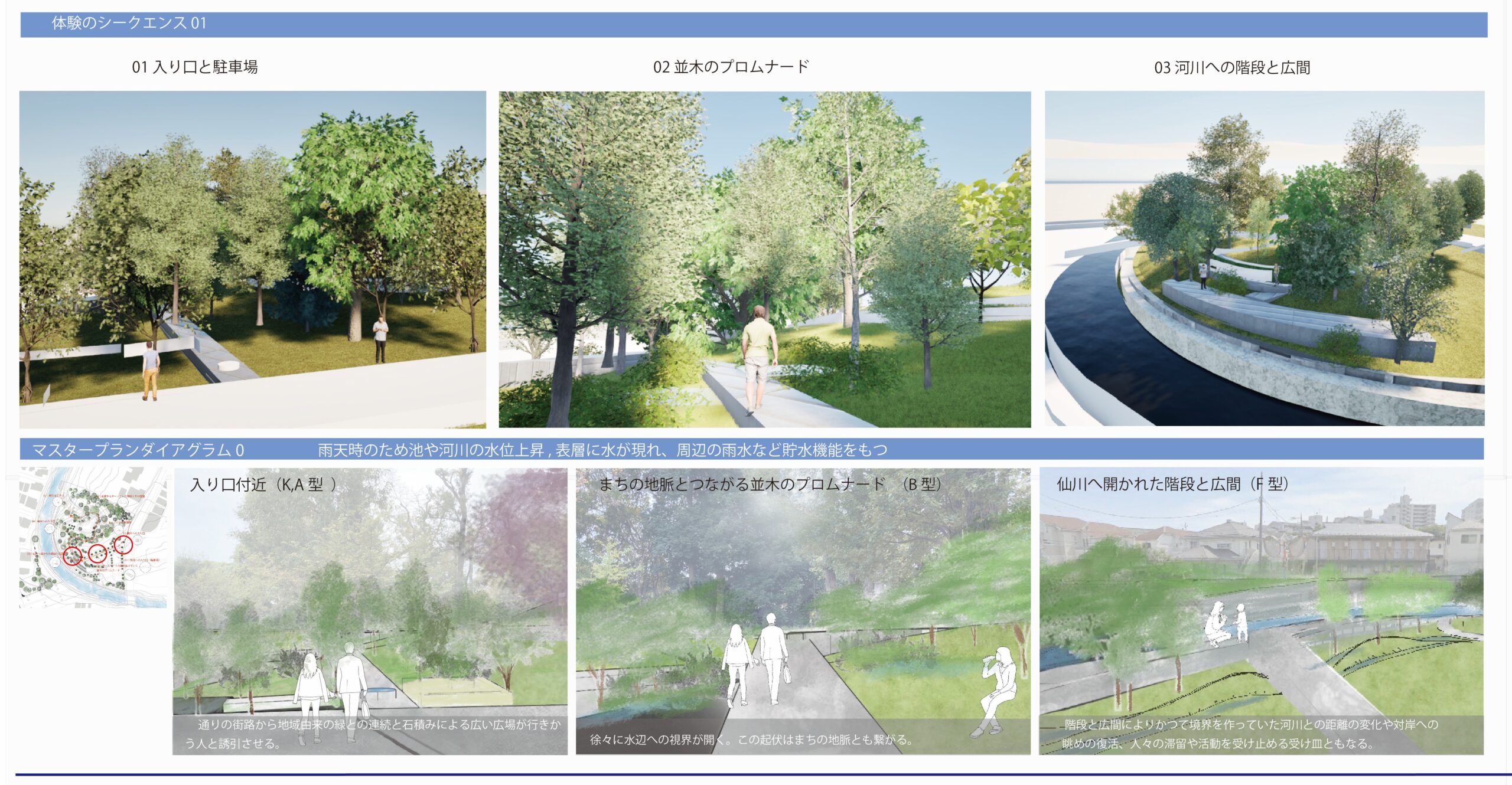歩いて紡ぐ、時の記憶 ―シークエンスの考察に基づく防災と循環が生む公園の提案―